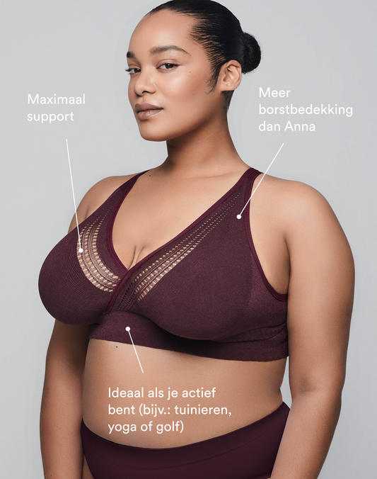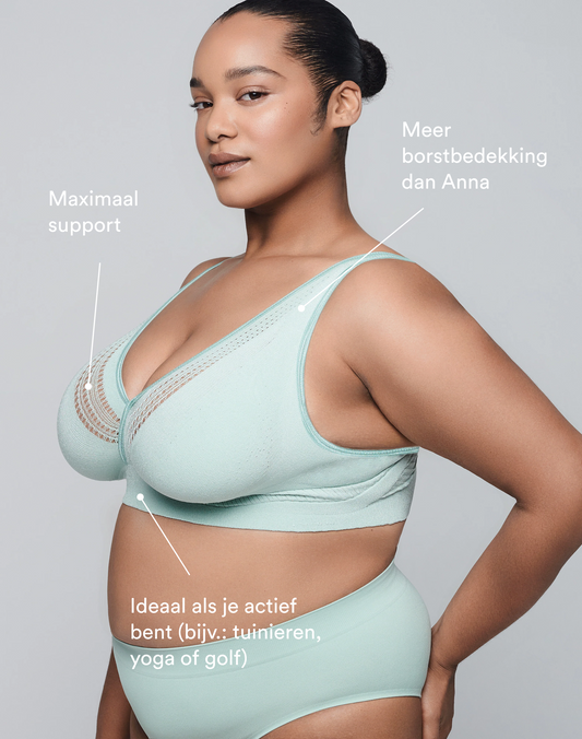 Dankzij onze innovatieve 3D-breitechnologie bieden onze bh’s ook perfecte ondersteuning voor grotere cupmaten (onze bh's gaan tot en met G) - en dat zonder beugels. In onze Google en Trustpilot reviews lees je veel positieve ervaringen van vrouwen met grotere cupmaten.