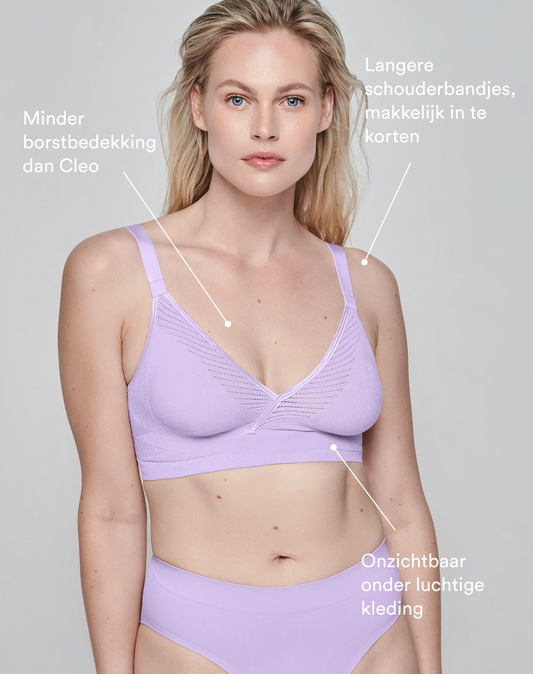 Door onze gepatenteerde 3D-breitechnologie breien we onze bh uit één stuk, zonder naden. Het resultaat? Een bh die zich vormt naar jouw lichaam, perfecte ondersteuning biedt, zonder het beruchte 'uni-boob' effect. De bh heeft unieke stretch cups die zich vormen naar jouw lichaam en waardoor je bij ons makkelijk wél de juiste pasvorm kan vinden.