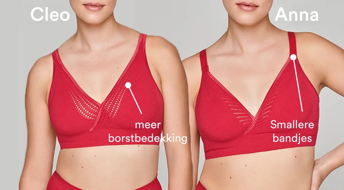 Cleo (onze bestseller) en Anna (iets lager uitgesneden). Verkrijgbaar in 8 prachtige kleuren. En Lara (ronde halslijn), verkrijgbaar in het zwart.