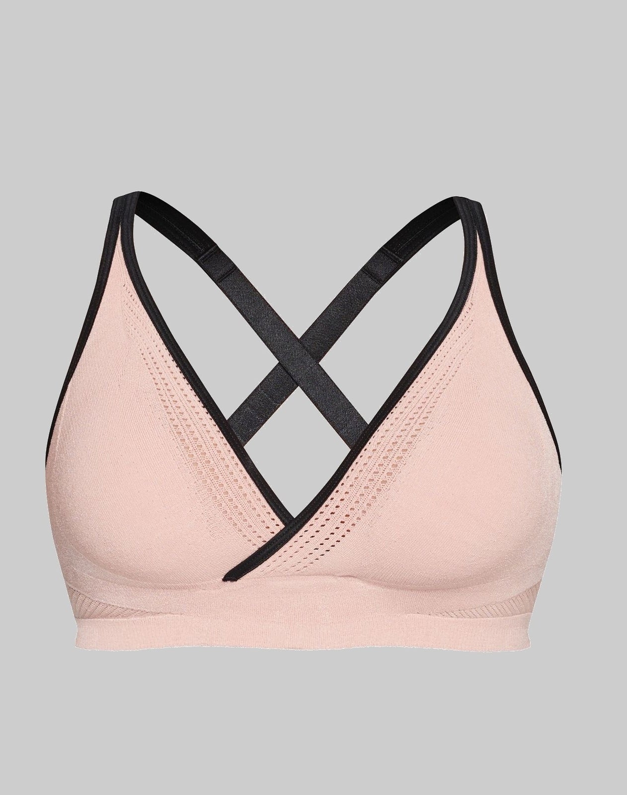 Tijdelijk terug de Cleo in Soft Pink met zwarte accenten. Comfortabele en ondersteunende bralette voor cupmaat B t/m G. Innovatieve 3D breitechnologie. Zachte stretch cups, naadloos en steun zonder beugel. Zolang de voorraad strekt.